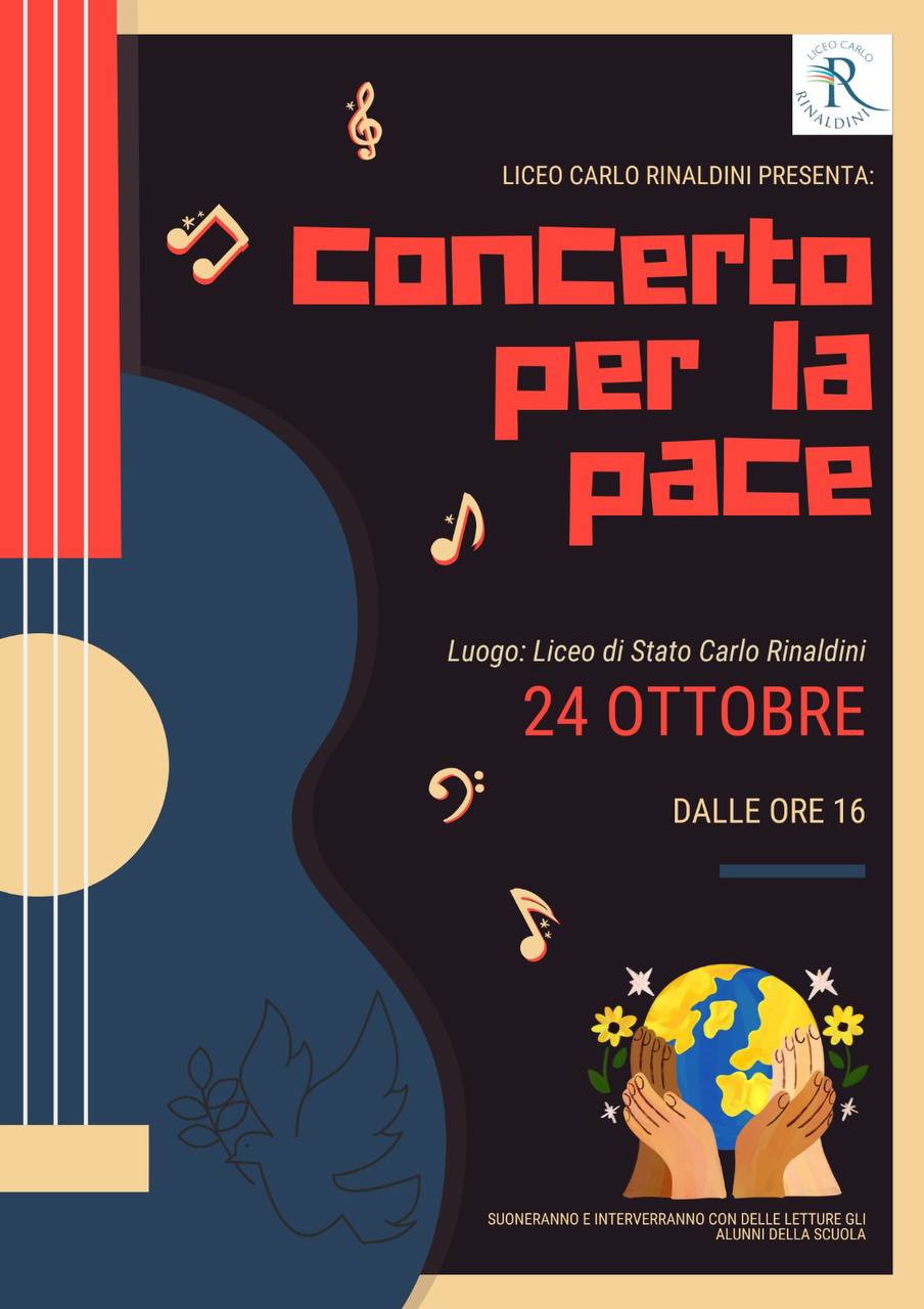 Si comunica a tutti gli studenti del Liceo Rinaldini che si è organizzato, per il giorno venerdì 24/10/2025, alle ore 16.00, un concerto per la pace negli spazi aperti del Liceo (in caso di condizioni climatiche avverse l’evento si sposterà in aula Magna).