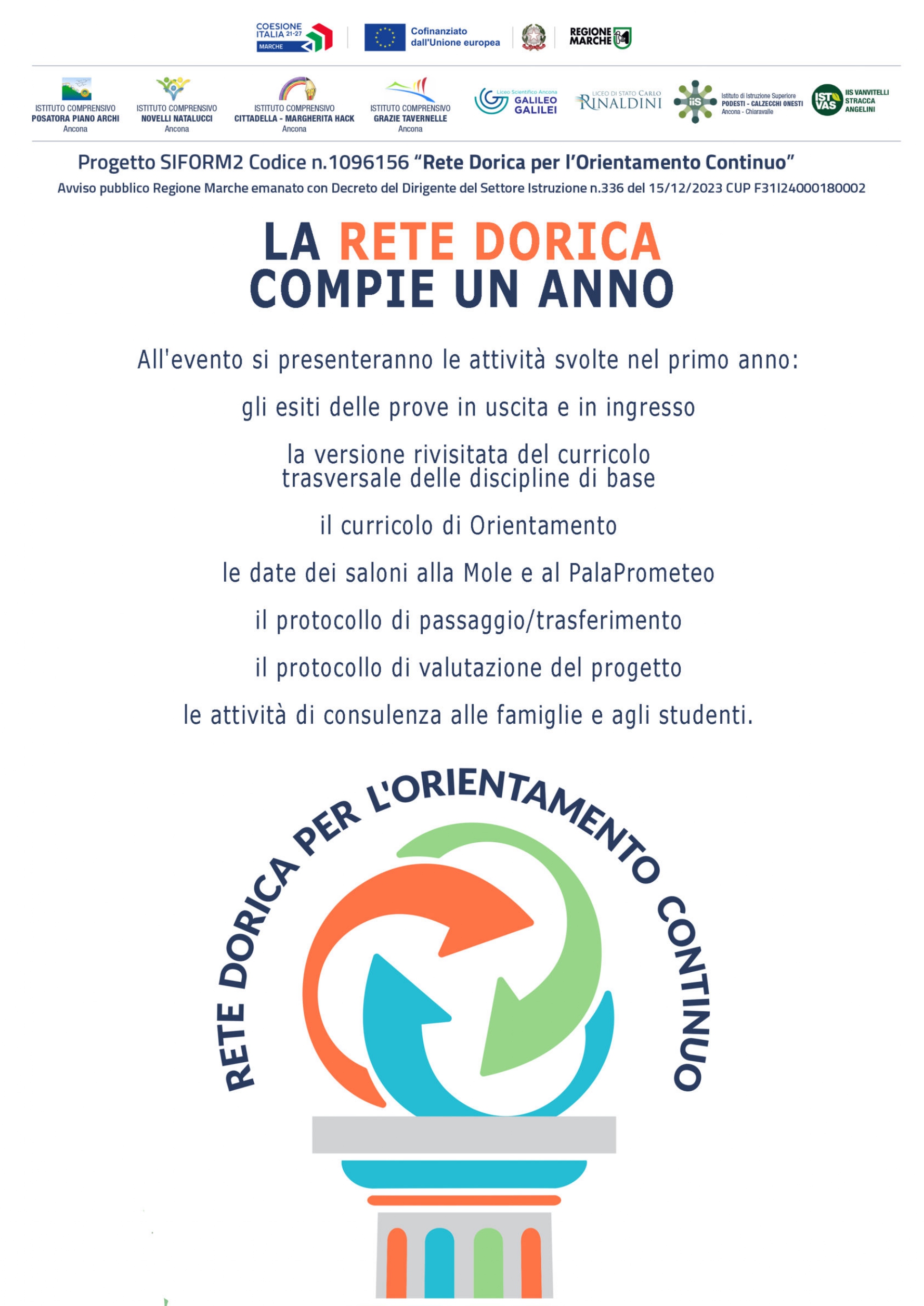 La Rete Dorica per l’Orientamento Continuo è un’iniziativa che coinvolge ben otto scuole della provincia di Ancona, con l’obiettivo di offrire un percorso di orientamento continuo e personalizzato, in linea con le recenti “Linee Guida per l’Orientamento” (Decreto Ministeriale 328/2022). La rete risponde alla necessità di combattere la dispersione scolastica e di facilitare scelte formative consapevoli, in modo che ogni studente possa trovare il proprio percorso ideale.