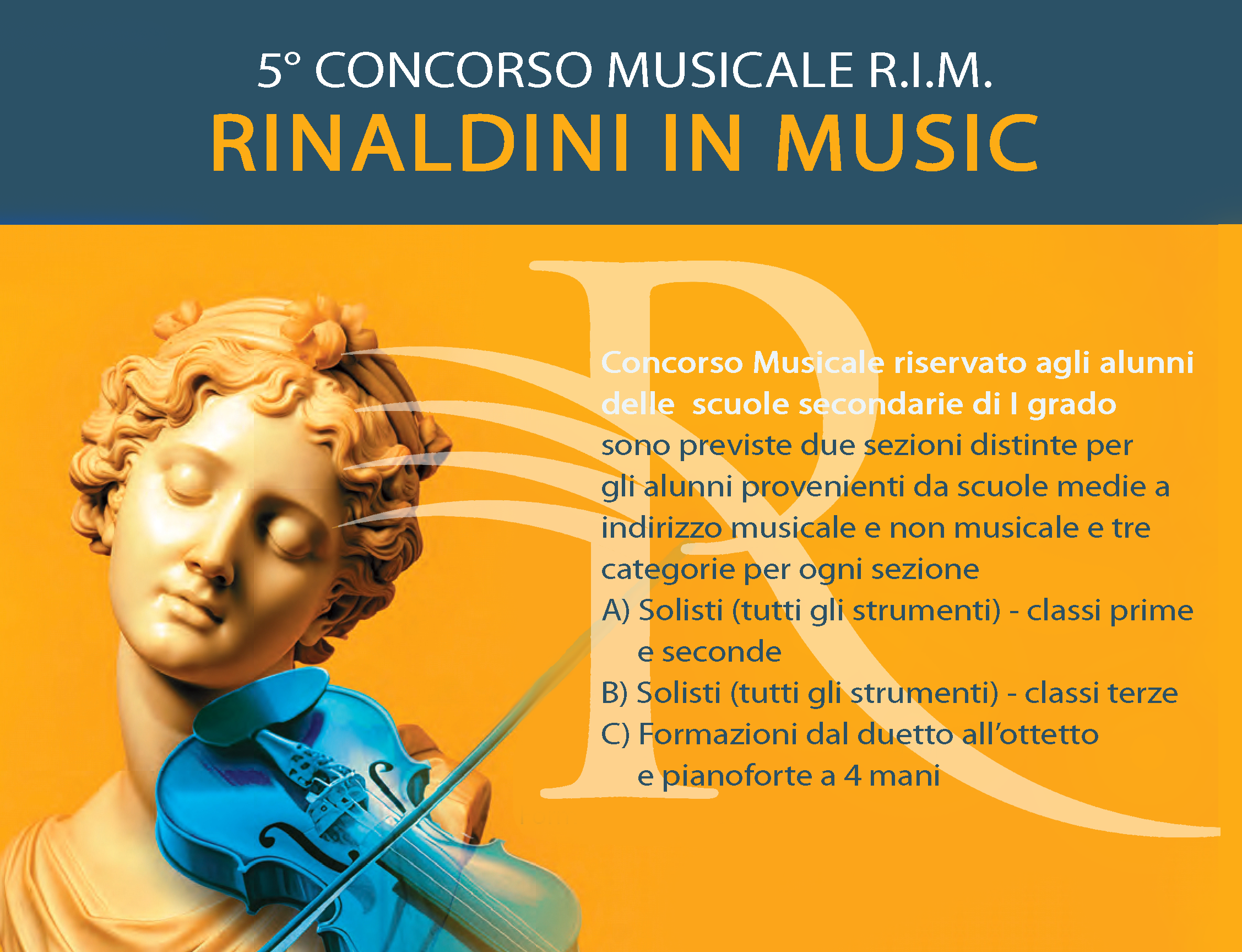 Il Liceo Musicale Carlo Rinaldini di Ancona organizza, in collaborazione con l’Ufficio Scolastico Territoriale di Ancona, il V Concorso Musicale riservato agli alunni delle scuole secondarie di I grado della Regione Marche, con o senza indirizzo musicale.